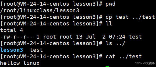 VM-24-14-centos:这是主机名,通常由系统管理员设置,用于标识当前主机。