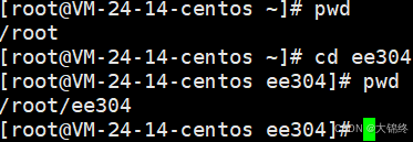ee304:这是当前工作目录的名称。当前工作目录是用户当前所在的目录