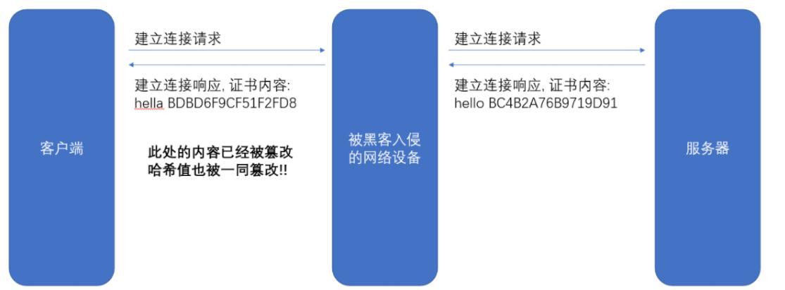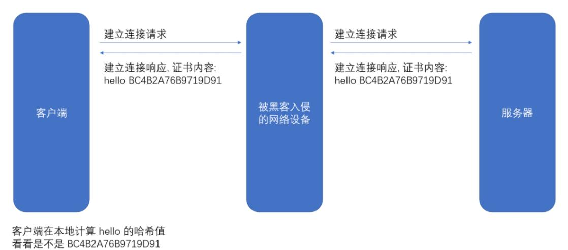 但是还有个问题, 如果黑客把 hello 篡改了, 同时也把哈希值重新计算下, 客户端就分辨不出来了呀。