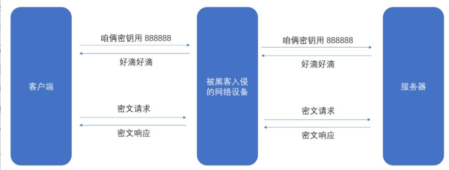 - 双方开始采用 X 进行对称加密,进行通信。但是一切都在中间人的掌握中,劫持数据,进行窃听甚至修改,都是可以的