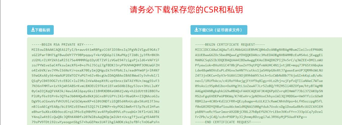 可以使用在线生成 CSR 和私钥:CSR在线生成工具