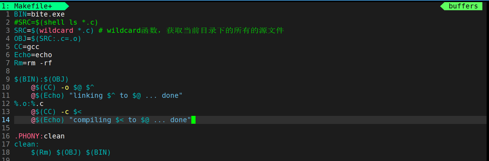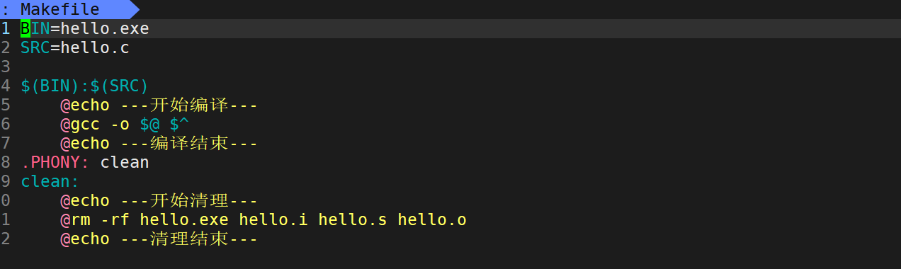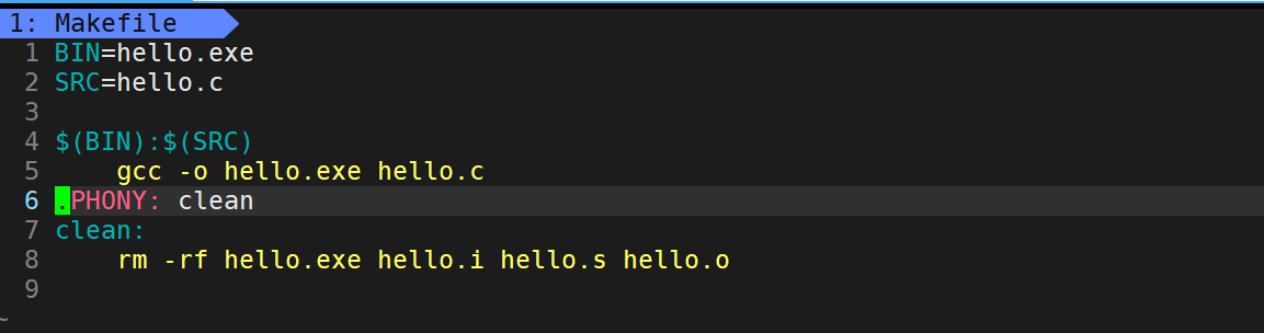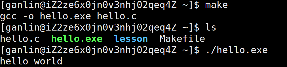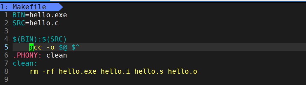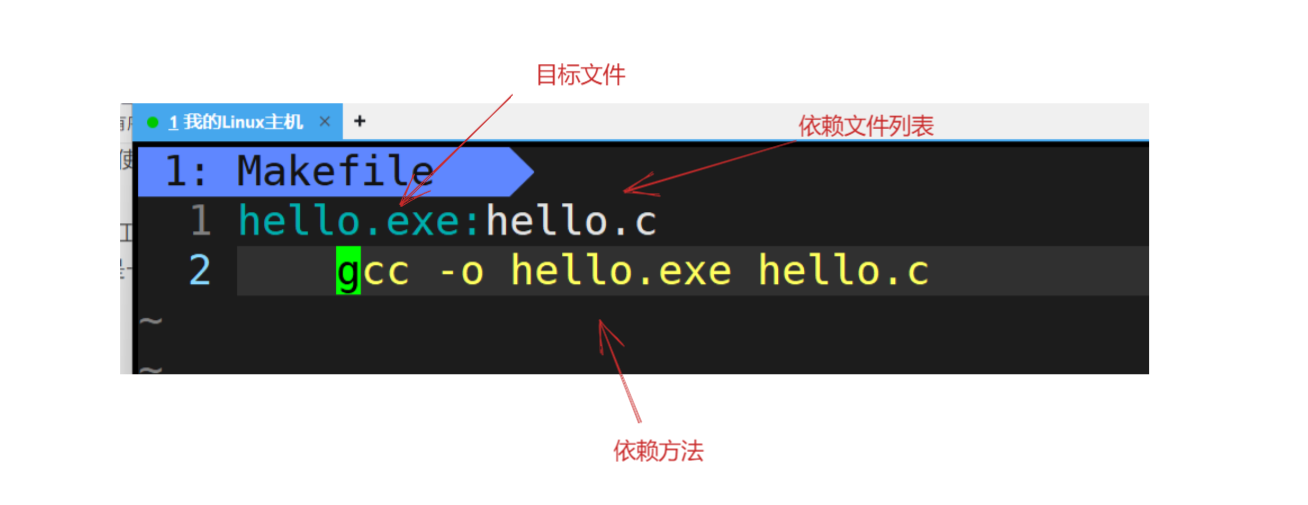 我们make+目标名就可以使用它的方法,我们如果默认make就是第一个依赖方法。