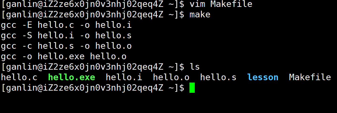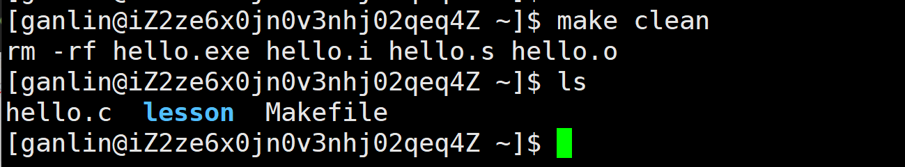 这里产生了一堆 hello.i/s/o/exe 的文件,我们如何清除这些呢?