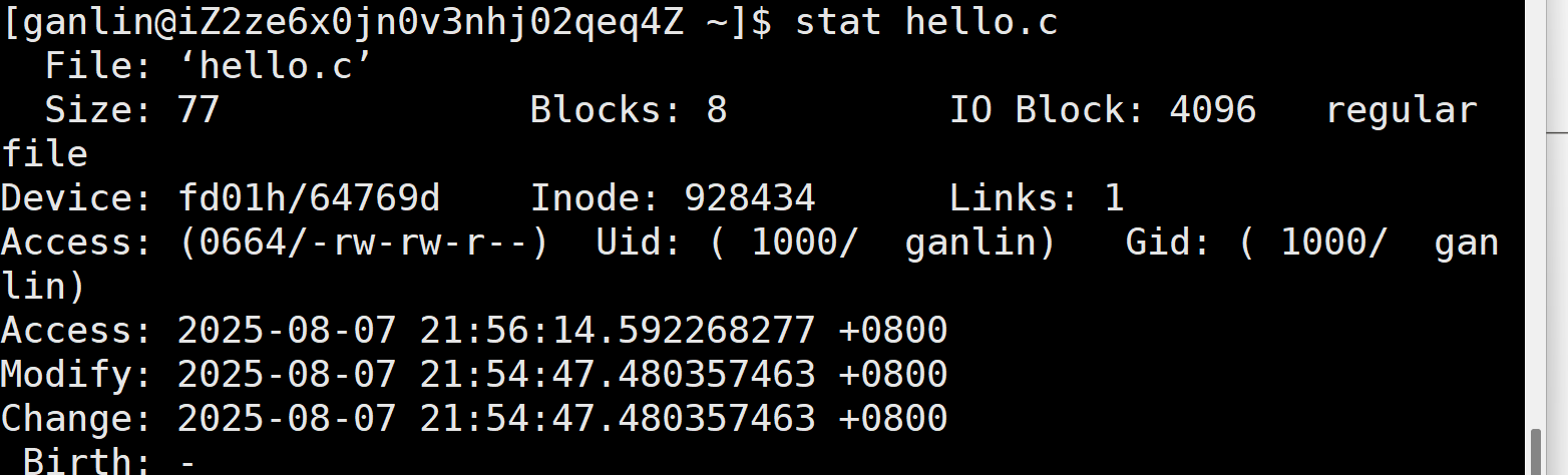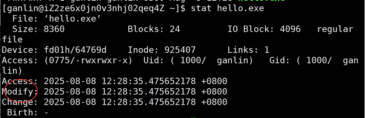 比如我们有100个文件你只修改了一个文件,你难道为了这一个文件,又要再重新编译其他999个文件吗。所以普通文件有一个Modify,可以使用stat来查询