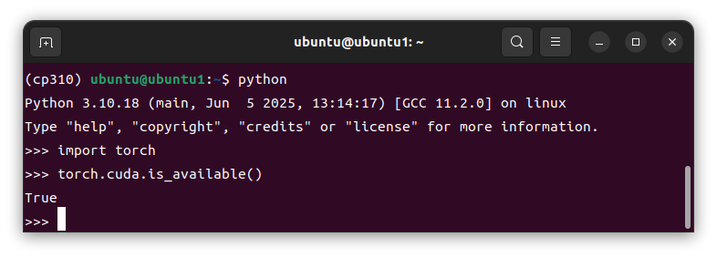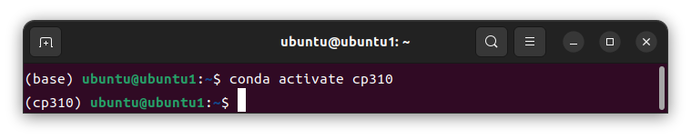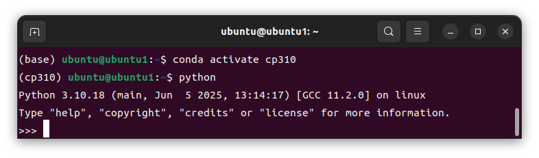 正常激活后命令行开头会出现(cp310)字样,表明你已经处于这个环境中,如下图所示: