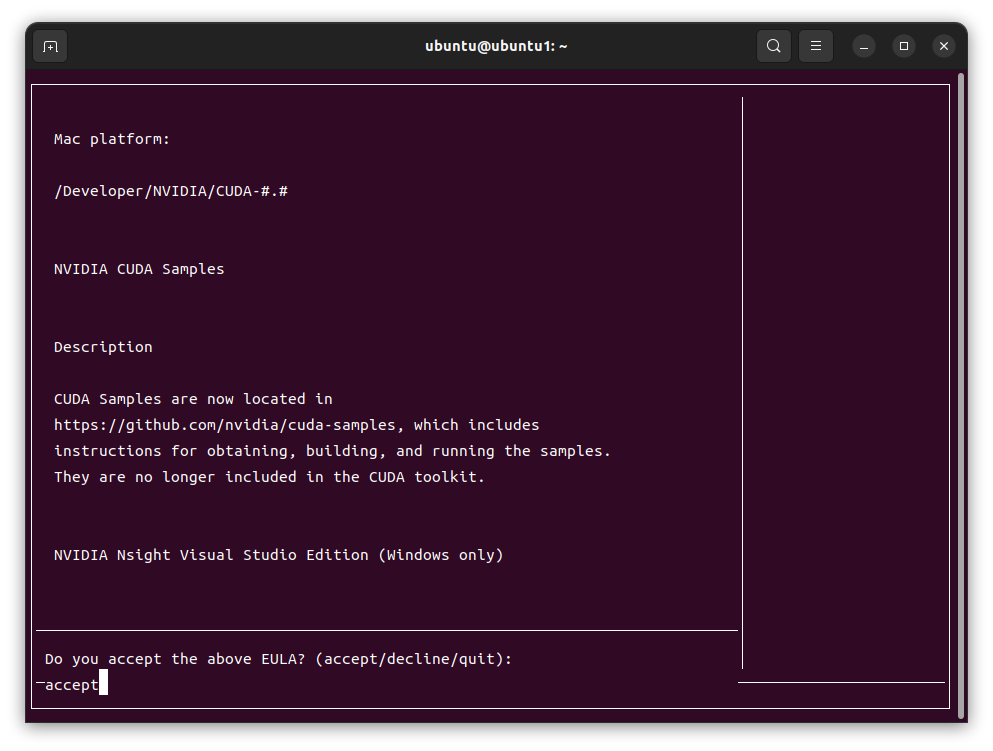 等待一段时间(大概三分钟),会出现下图界面,在光标处输入accept进入安装程序