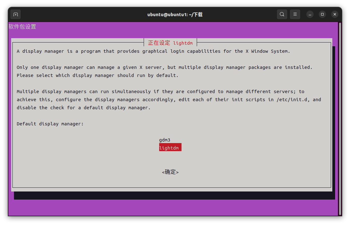 正常安装完成会自动提示选择默认显示管理器,如下图: