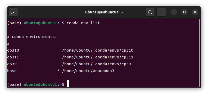 输入以下命令建立指定Python版本为3.10的虚拟环境cp310: