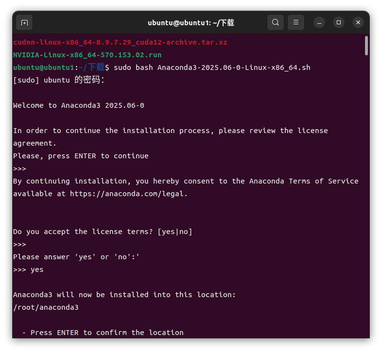 sudo bash Anaconda3-2025.06-0-Linux-x86_64.sh