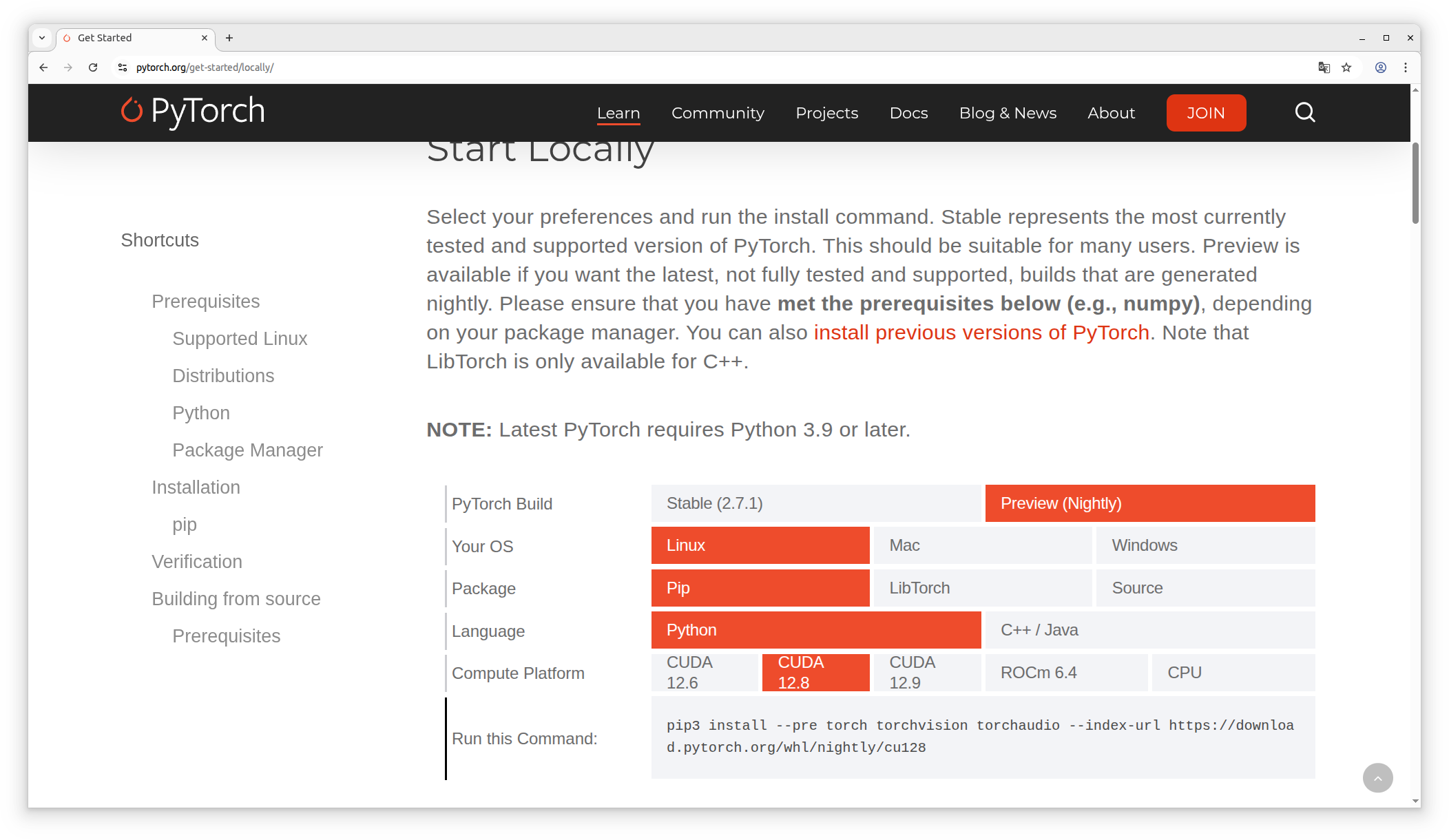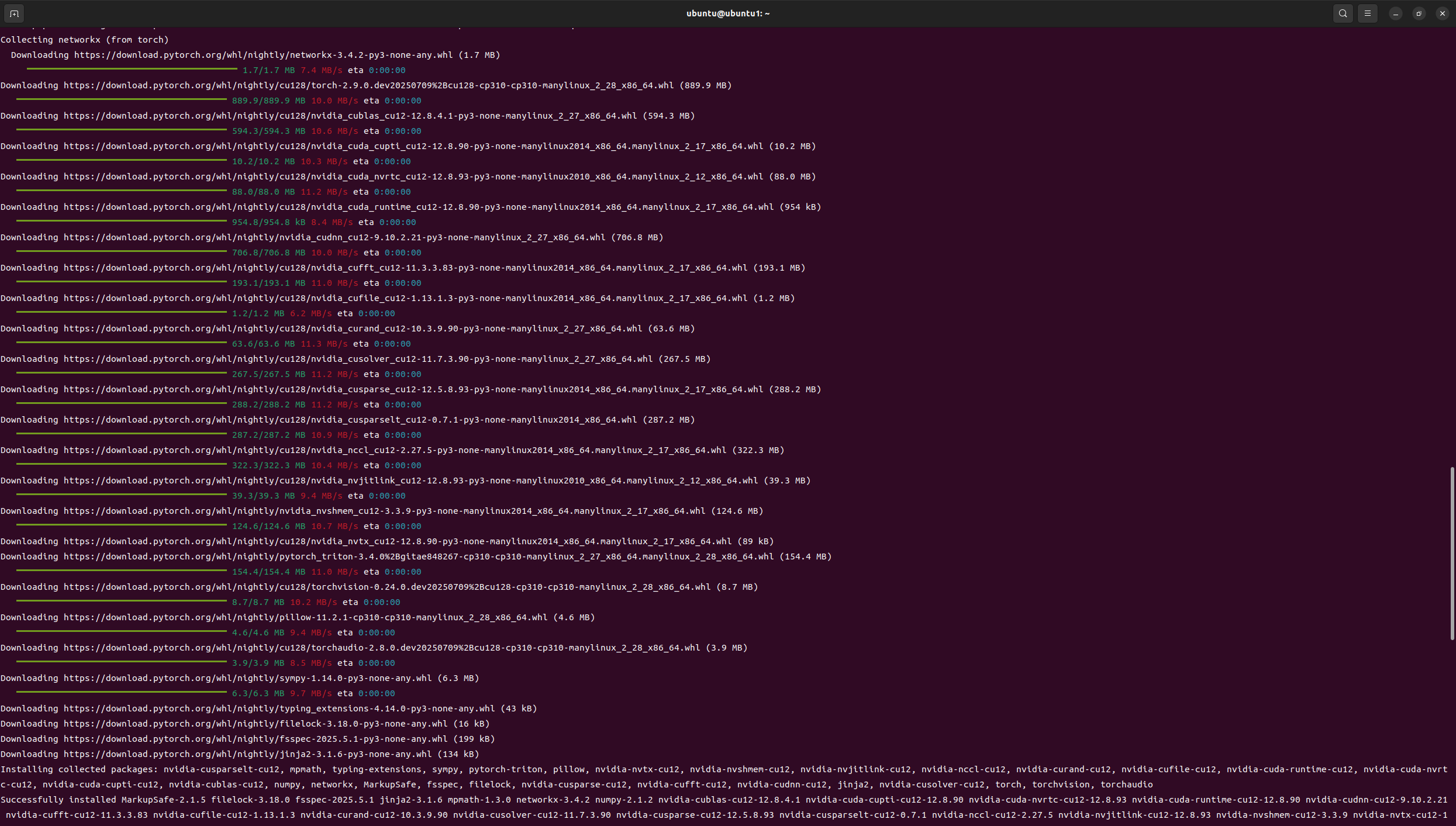 pip3 install --pre torch torchvision torchaudio --index-url https://download.pytorch.org/whl/nightly/cu128