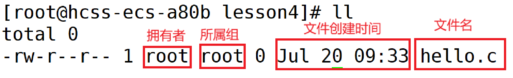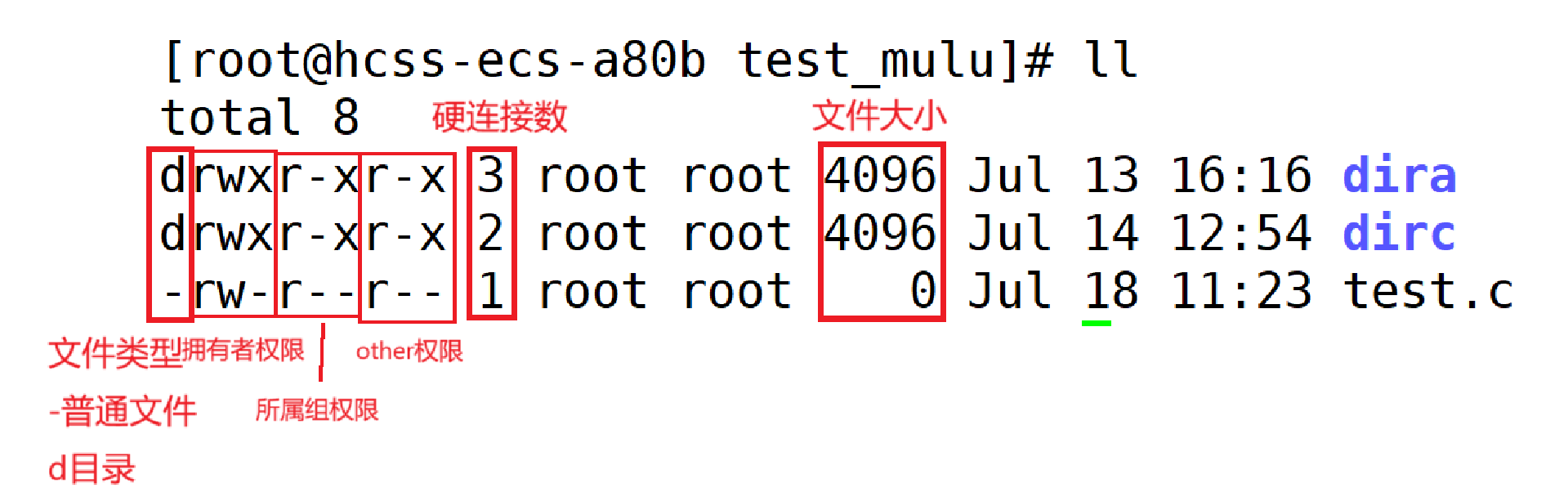 test.c文件的拥有者是root,所属组也是root,该文件的拥有者对应的权限是可读可写不可执行,该文件的所属组对应的权限是可读不可写不可执行,other没在这里体现出来,该文件other对应的权限的可读不可写不可执行。