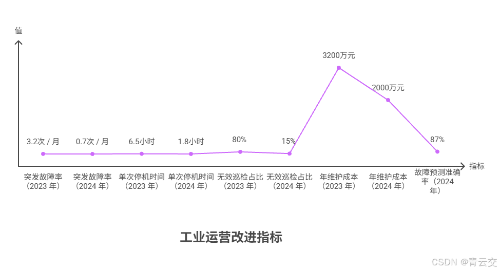 这不是个例。工信部《2024 年工业物联网发展报告》(“设备运维效率”)显示:国内 72% 的工厂 “设备故障靠听声”,平均每月因突发停机损失占产值的 3.8%;45% 的传感器数据 “滞后或说谎”,导致 90% 的巡检是 “无效跑腿”(师傅到了设备好好的)。某重型机械厂测算:一次未预测的主轴故障,维修要 50 万,连带订单违约赔偿,总损失是维修成本的 6 倍。