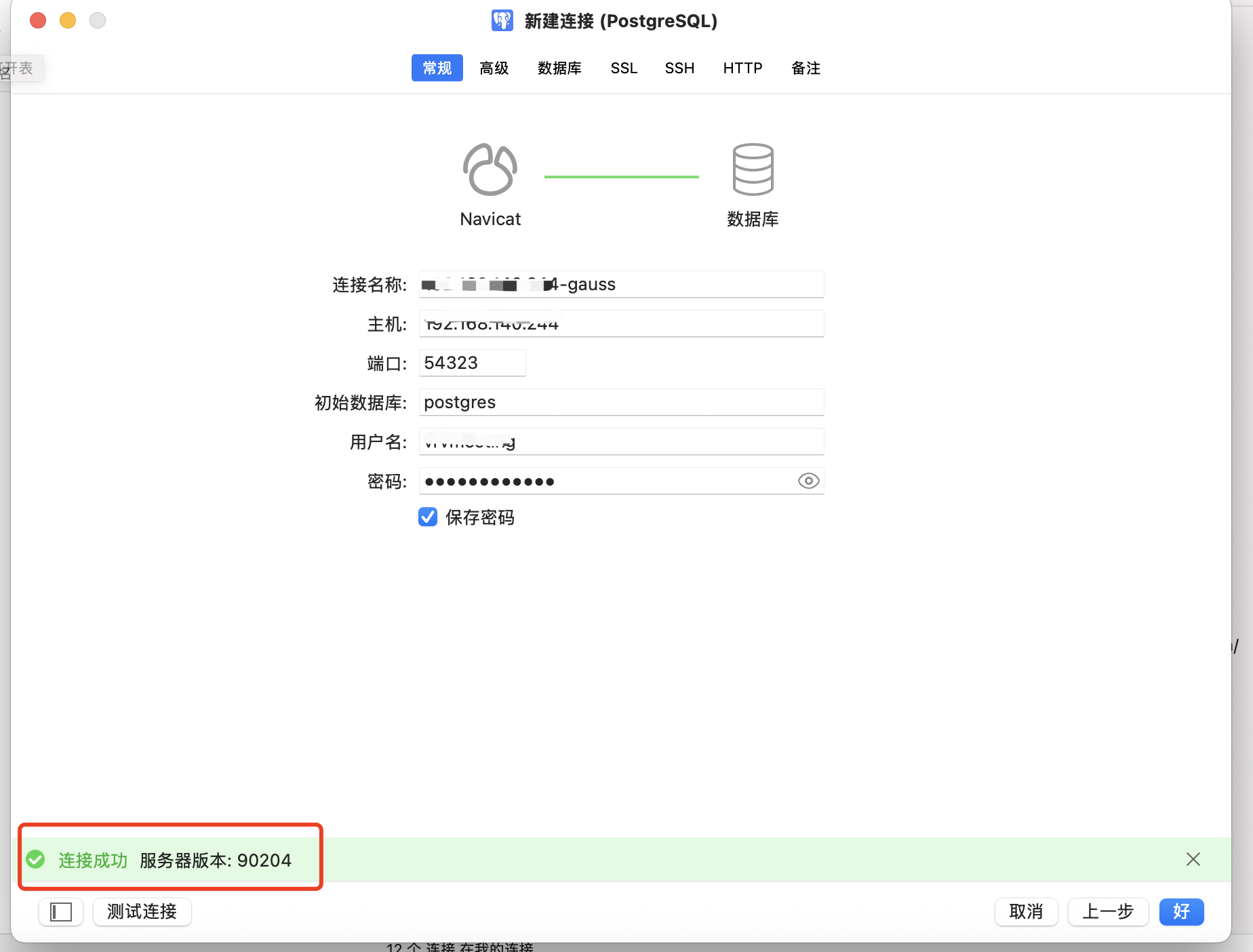 ✅ Navicat 连接 PostgreSQL 时,只需填以上信息即可连接 openGauss。