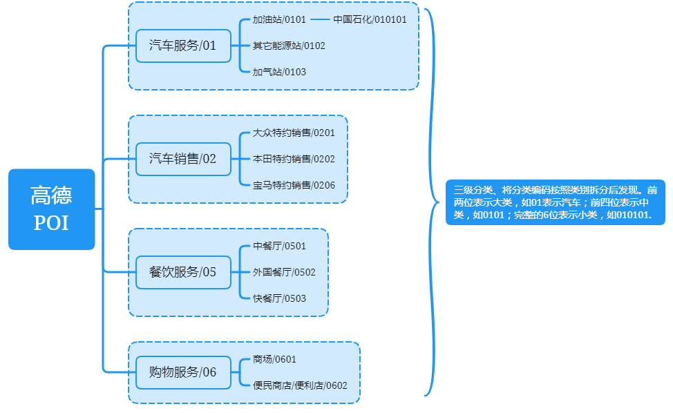 | 3 | 大类 | POI大类,如:汽车服务 |