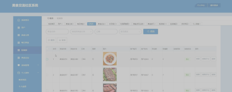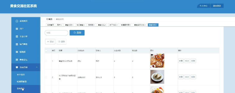 结合前端技术实现了用户管理、美食分享、评论互动等功能。通过对系统的测试和优化,实验结果表明,该系统具有良好的性能和用户体验,能够满足美食爱好者的实际需求。