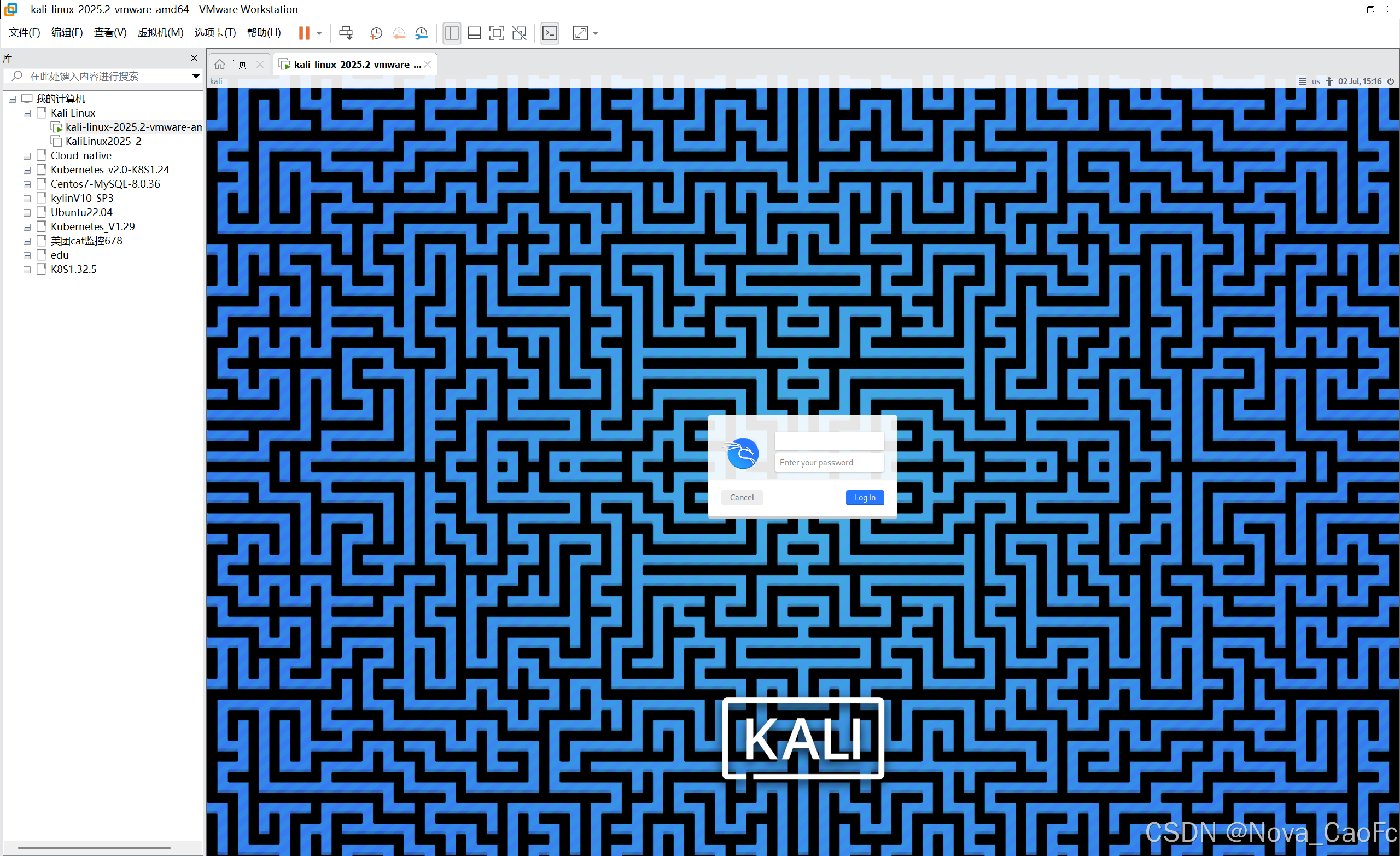 kalilinux2025-2初始化默认用户名为: kali 密码为: kali