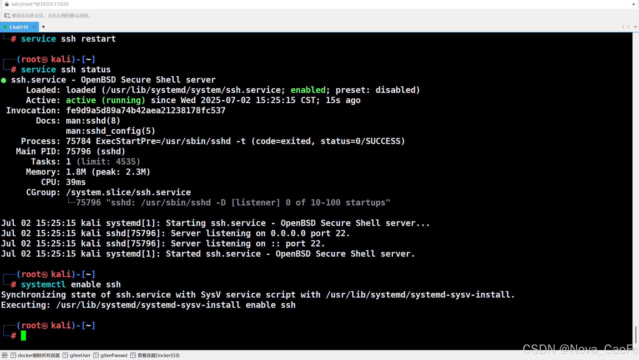 └─# systemctl enable ssh