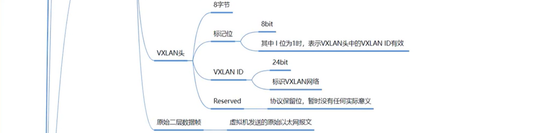 - VXLAN头(8字节):包含标记位、24位VNI和保留位,其中I位为1时表示VNI有效,VNI用于标识目标虚拟网络;