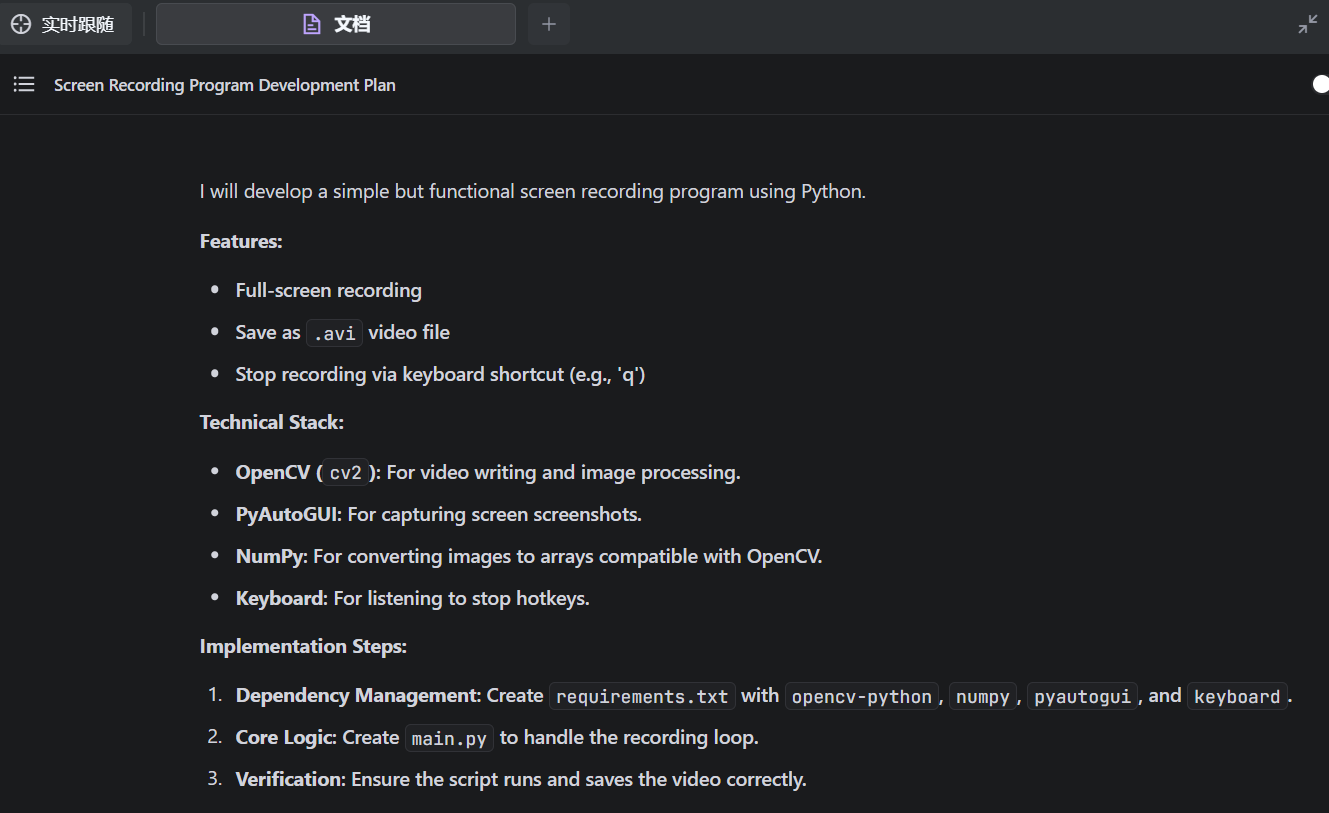 借助 TRAE 的强大辅助,我们不仅修复了 Bug,更是在架构设计和交互细节上完成了质的飞跃。现在,这款录屏软件已经打包成了一个独立的 .exe 文件,不需要 Python,不需要 FFmpeg,双击,即刻开始你的创作。