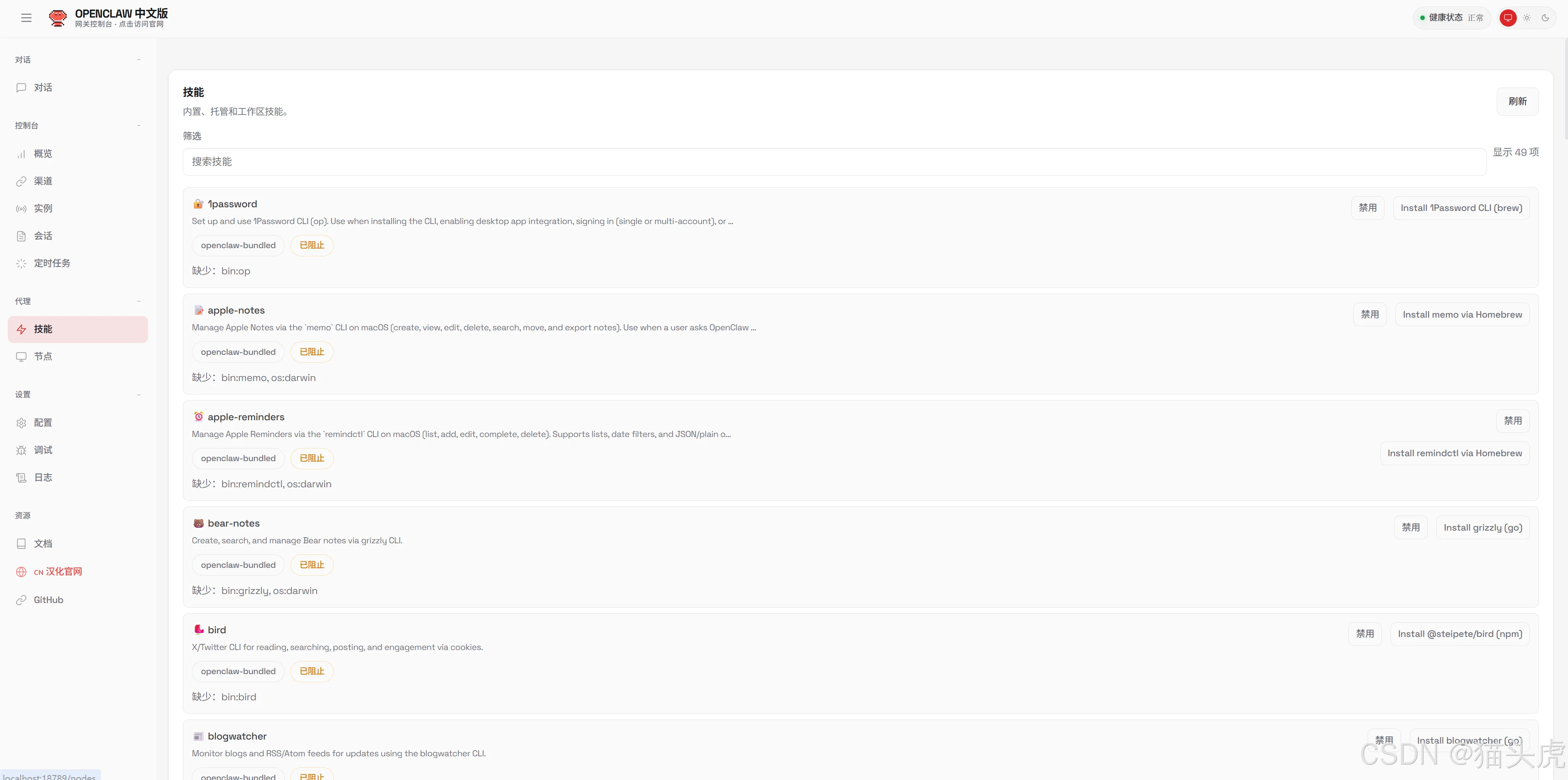 技能插件 - 1Password、Apple Notes 等丰富扩展: