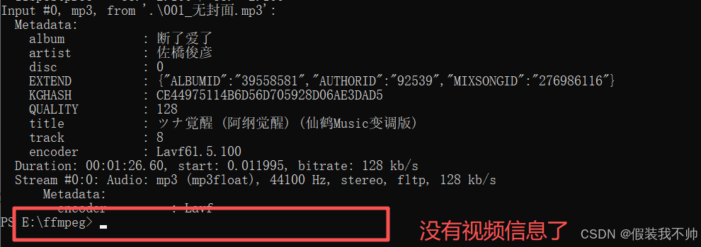 - Video: mjpeg:MP3 的封面本质是附加的 MJPEG 格式图片流,并非真正的视频,ffmpeg 会把它识别为视频流;