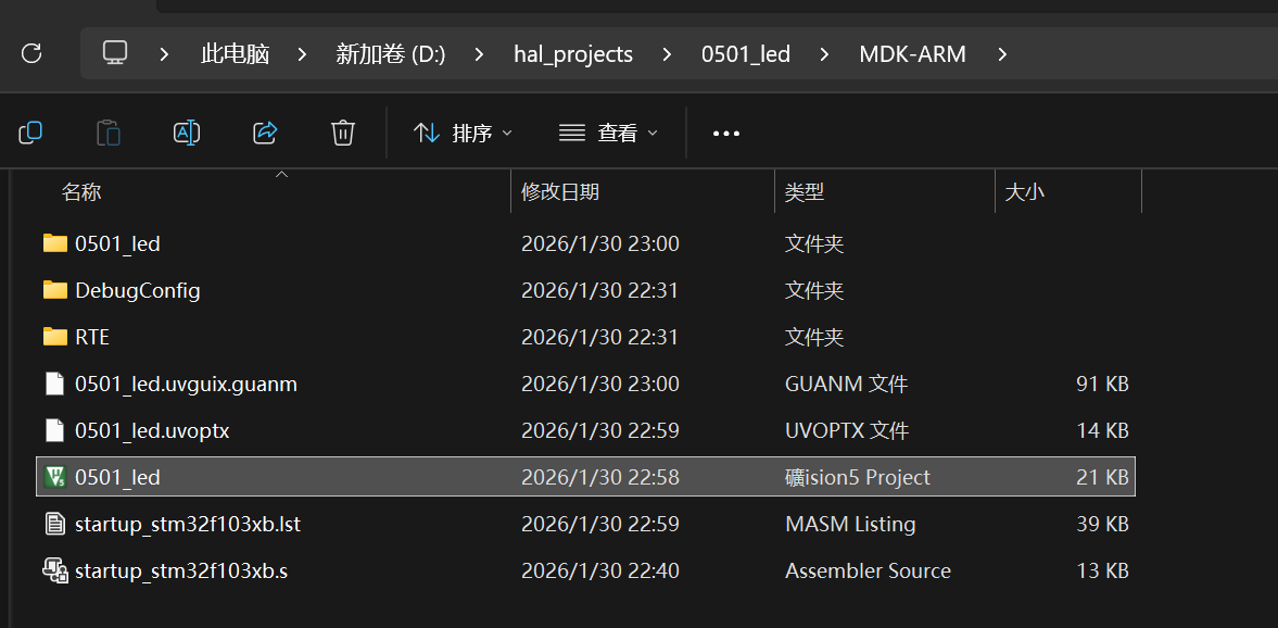在keil5中打开GPIO.C文件,可以看到文件中已经配置好了PC13引脚的输出模式