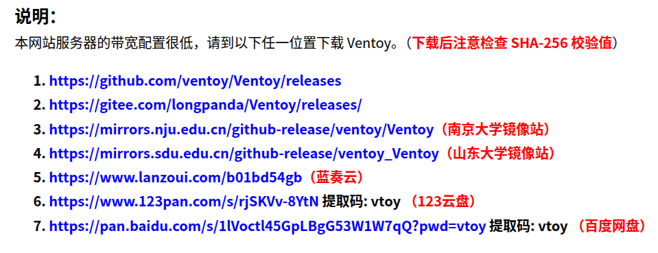 Ventoy下载地址(github):https://github.com/ventoy/Ventoy/releases/download/v1.1.05/ventoy-1.1.05-windows.zip