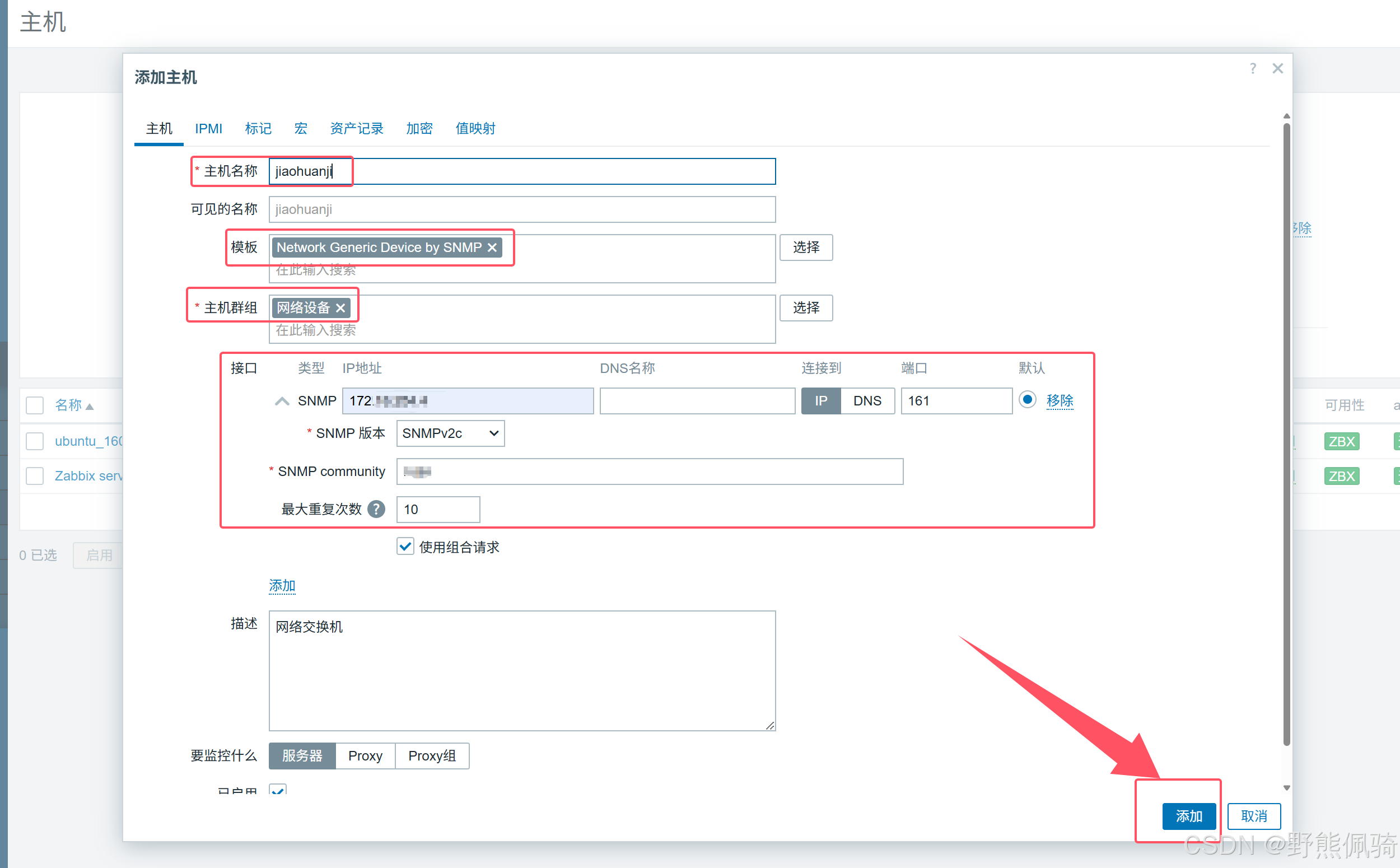 主机群组:网络设备(选择上面创建的“网络设备”群组)