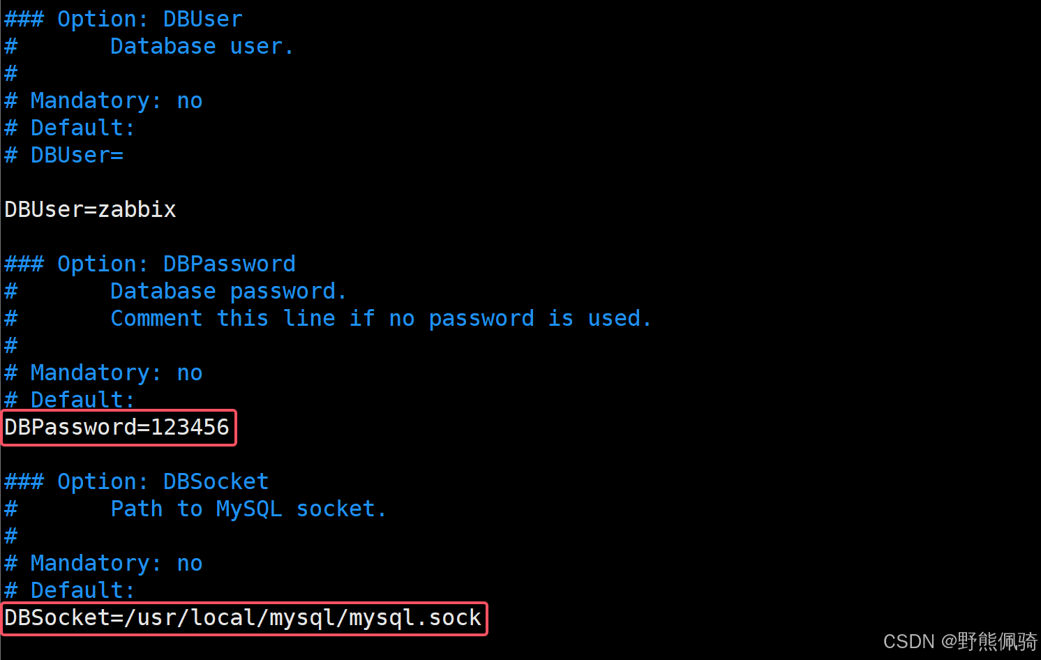 编辑配置文件 /etc/zabbix/zabbix_server.conf,根据实际情况修改zabbix数据库访问密码以及socket文件位置。