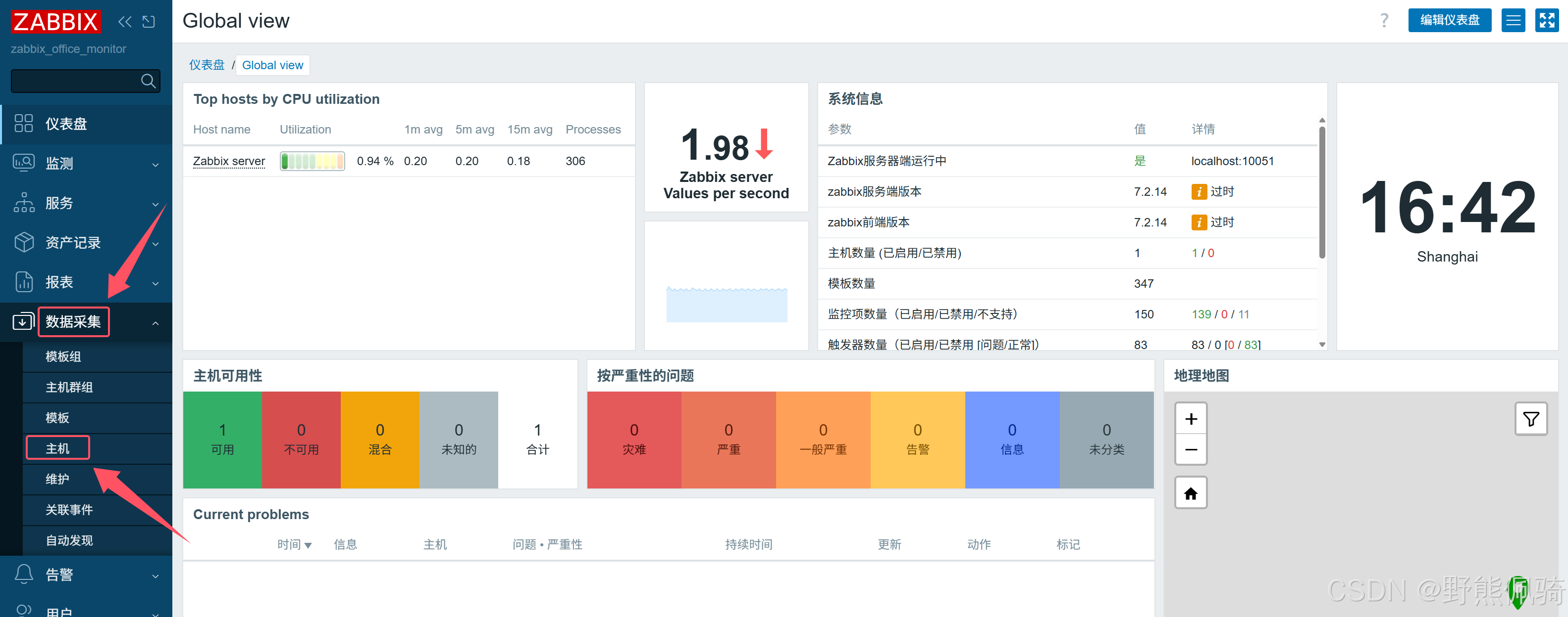 - 选择“数据采集”-->“主机”