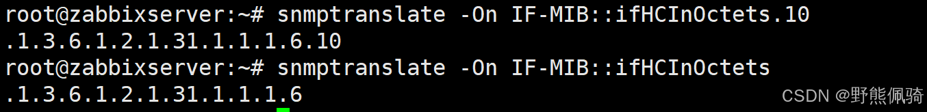 将MIB名称 IF-MIB::ifHCInOctets.10和IF-MIB::ifHCInOctets,转换为对应的OID值。