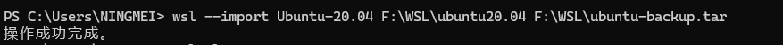wsl --import 新名称 新目录路径 备份文件路径