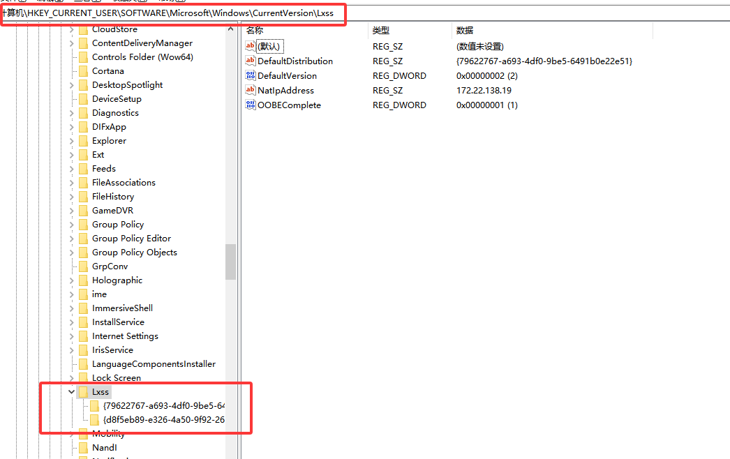 HKEY_CURRENT_USERSoftwareMicrosoftWindowsCurrentVersionLxss
