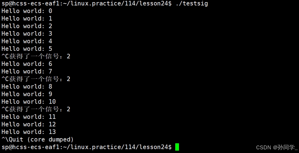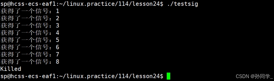std::cout << "获得了一个信号:" << sig << std::endl;