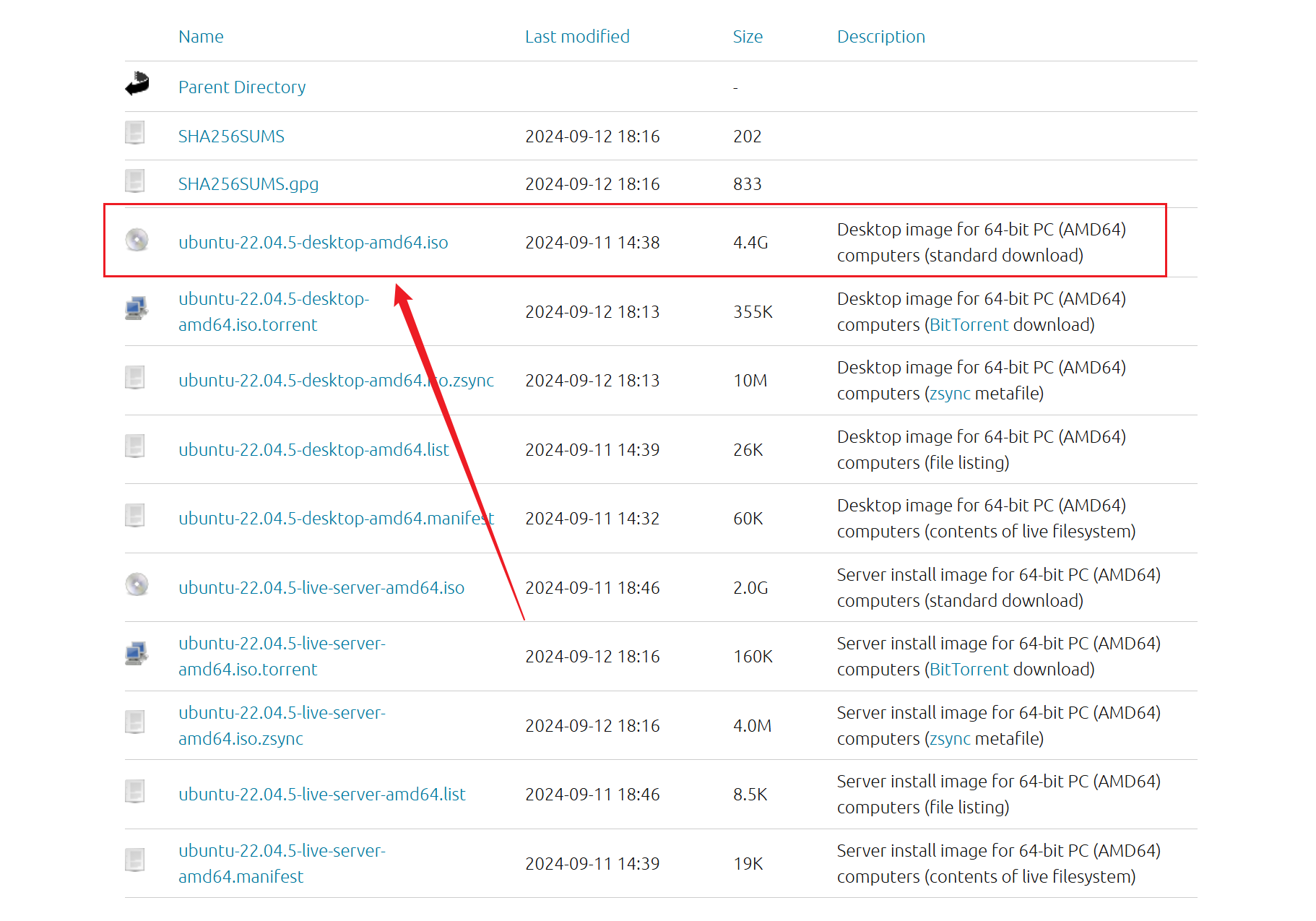 - 点击 清华大学开源软件镜像站 - Ubuntu 22.04.5 下载