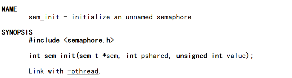 init的第一个参数是sem_t*类型的,是我们定义的信号量,第二个可以不管,设置为0,第三个参数是信号量初始化为多少,按照生产者和消费者的需求进行初始化。