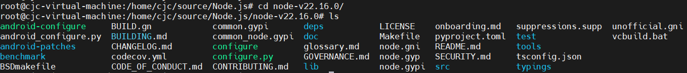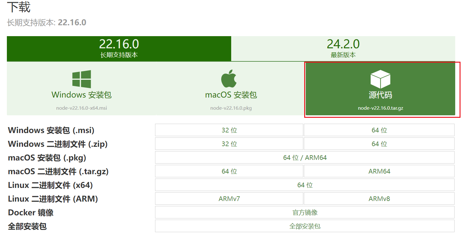 首先在 下载 | Node.js 中文网 下载Node.js源码,比如下载node-v22.16.0.tar.gz: