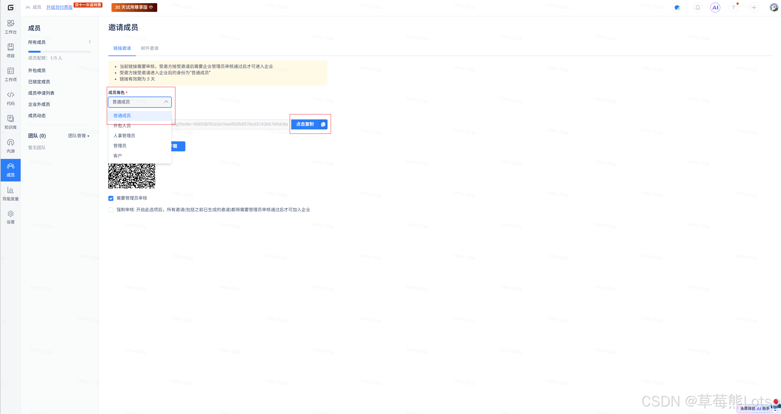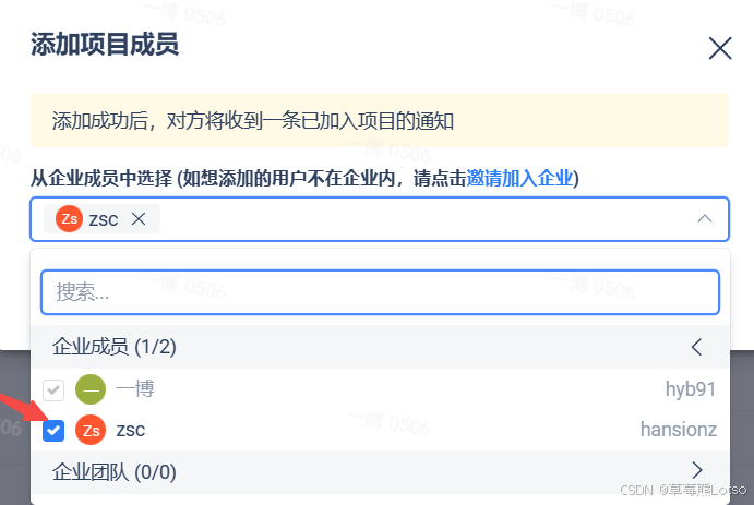 2. 添加项目成员: