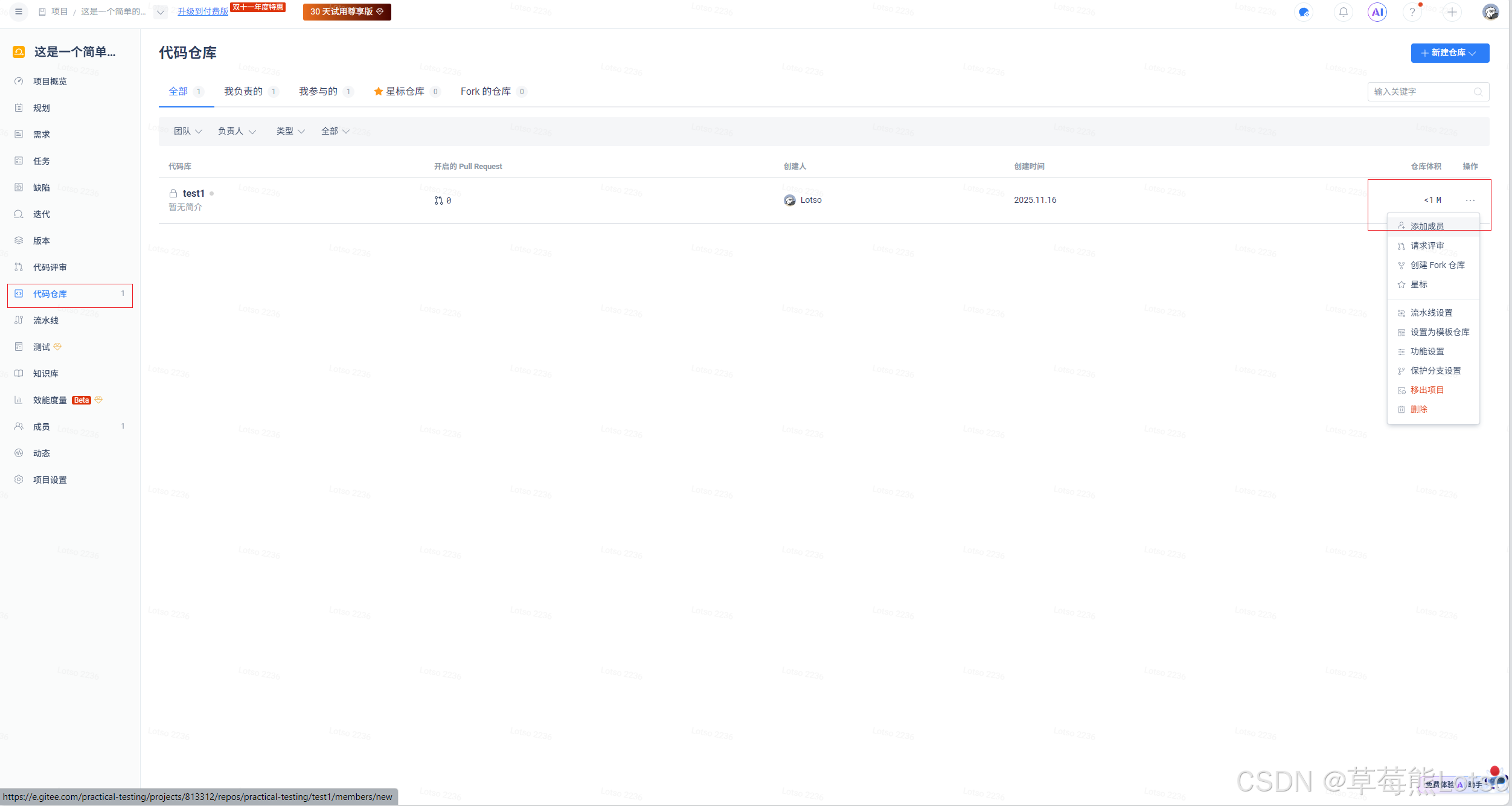 注意:创建的仓库可以关联到某个项目中被管理
