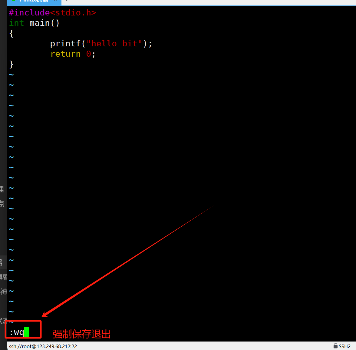 Esc返回命令模式,输入:q!强制退出;若需保存退出,输入:wq或快捷键Shift+zz。