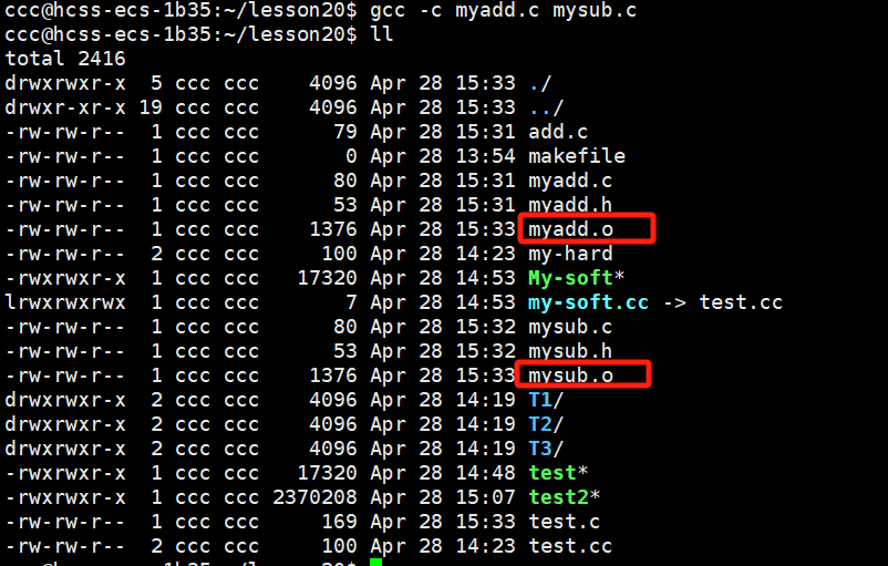 gcc -c myadd.c mysub.c