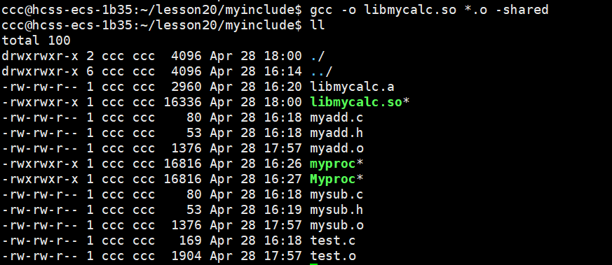 sudo ln -s /home/ccc/lesson20/myinclude/libmycalc.so /lib64/