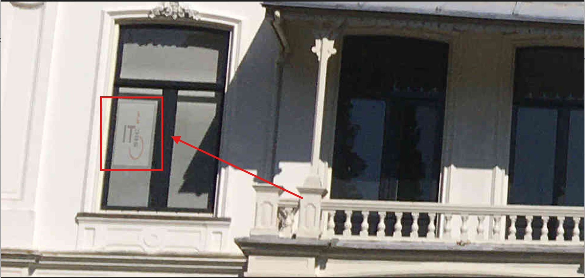 把图片放大查看,发现在图中建筑的二楼左边窗户中,隐约能看到名字“ITsec”,这应该就是安全问题的答案了。
