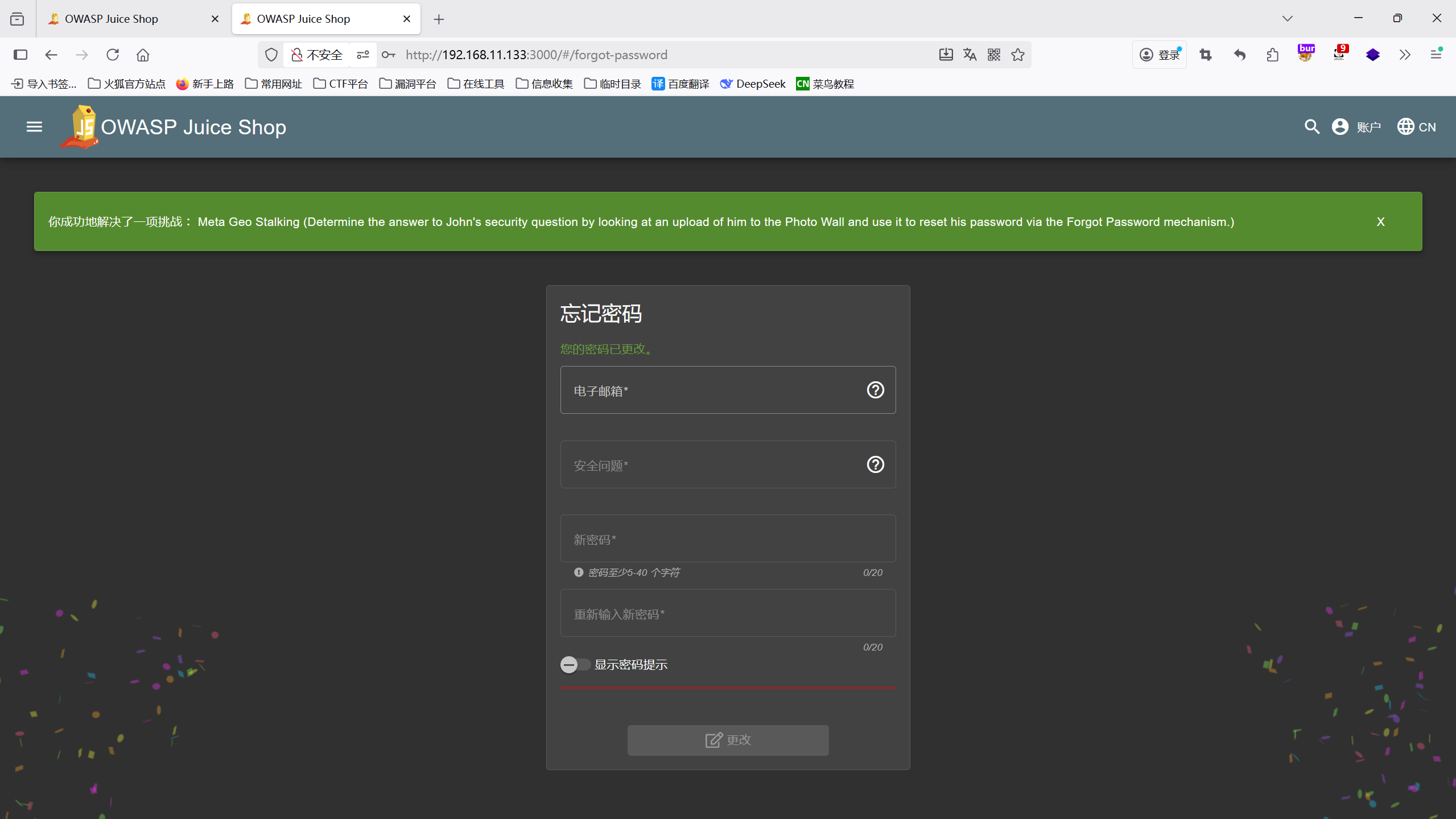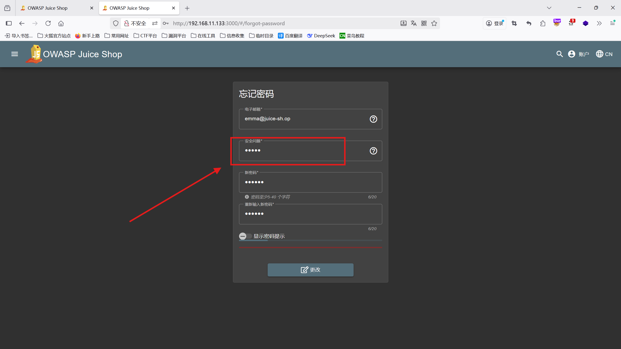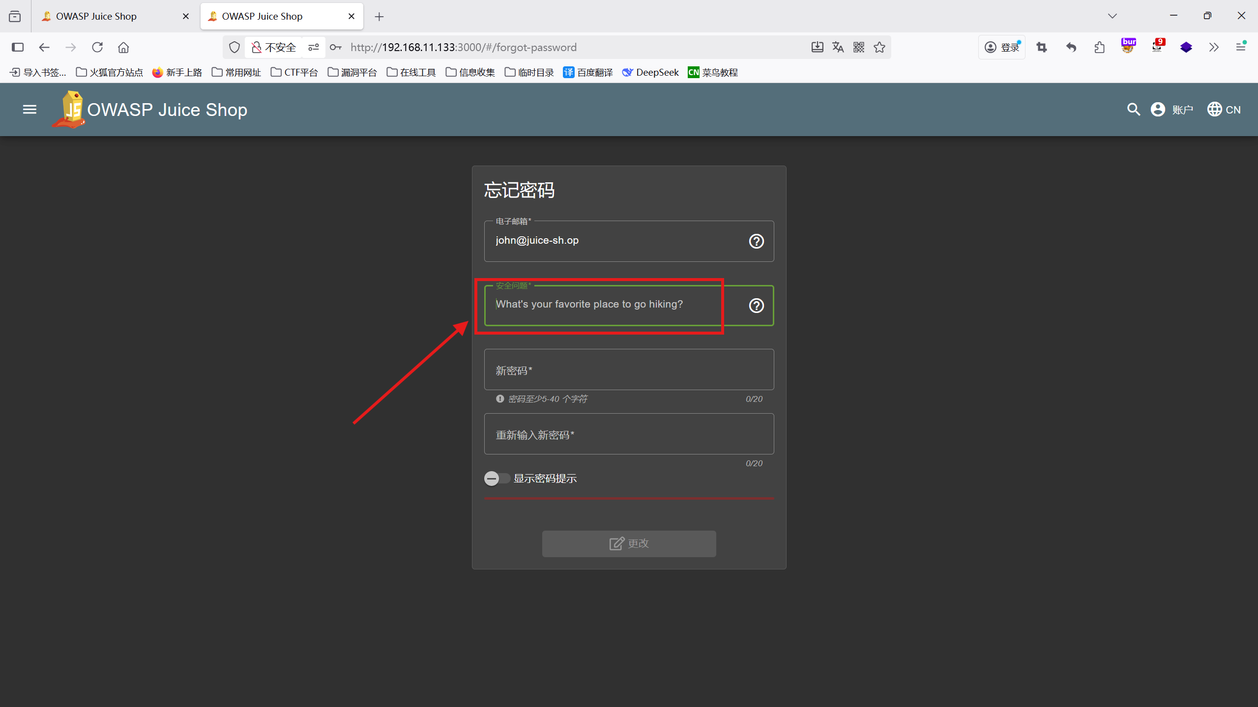 回到忘记密码页面,填入答案“ITsec”,修改密码。