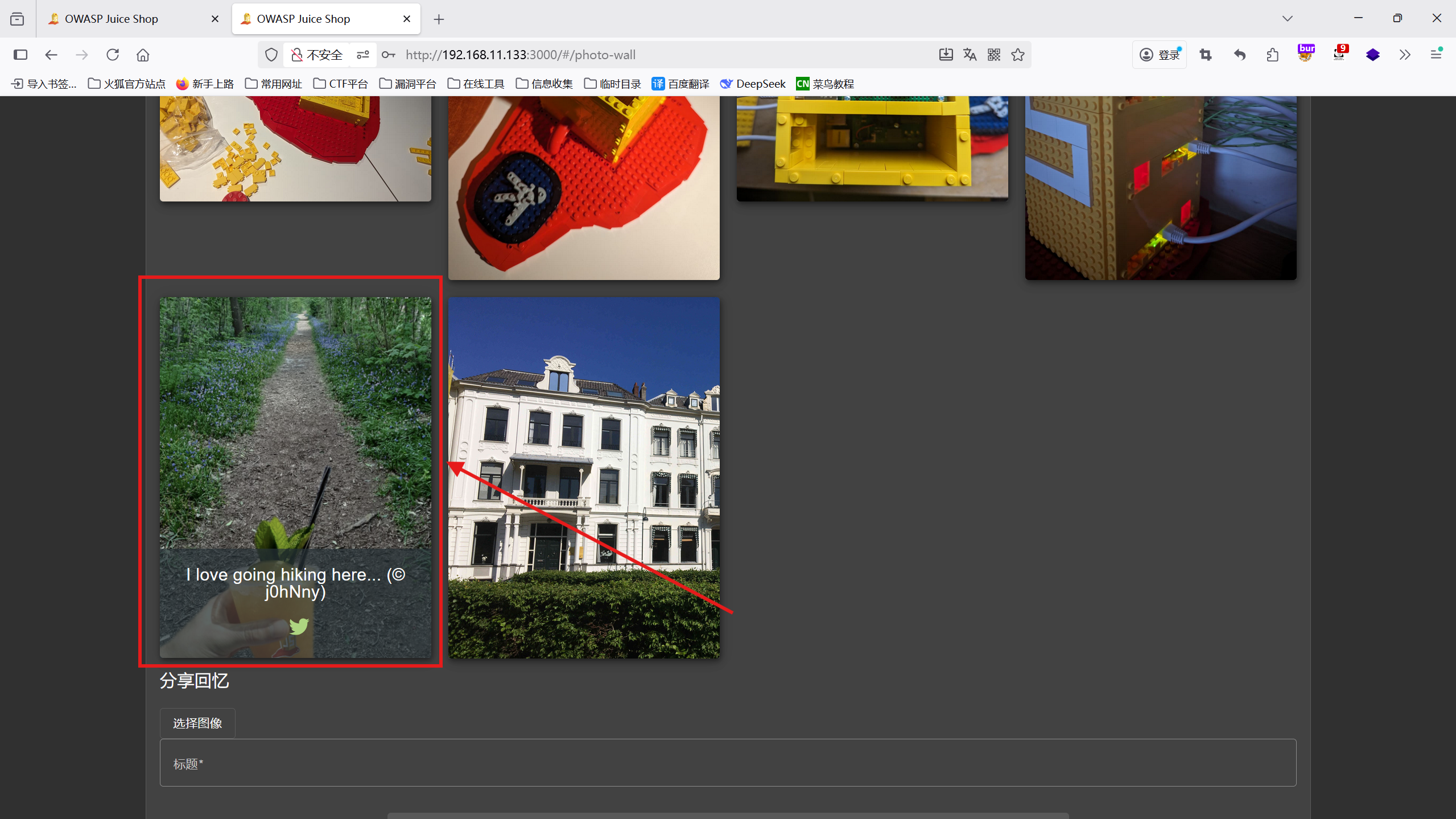 通过查看他上传到照片墙的照片来确定John安全问题的答案并通过忘记密码机制重置他的密码。