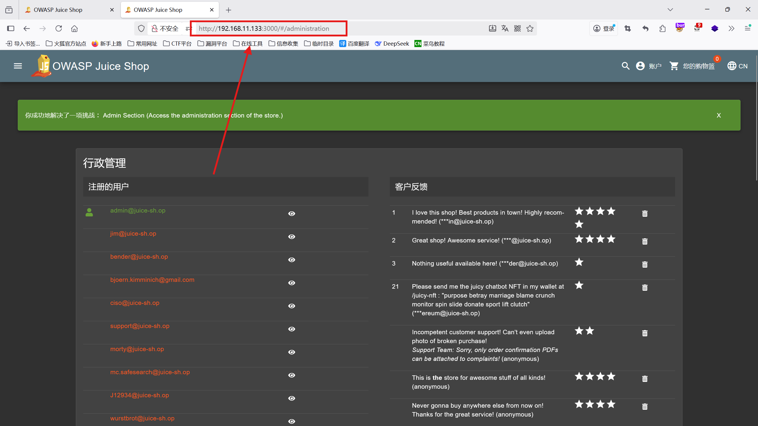 在登录了admin账号的情况下,直接拼接访问该链接,进入管理页面,挑战随即完成。