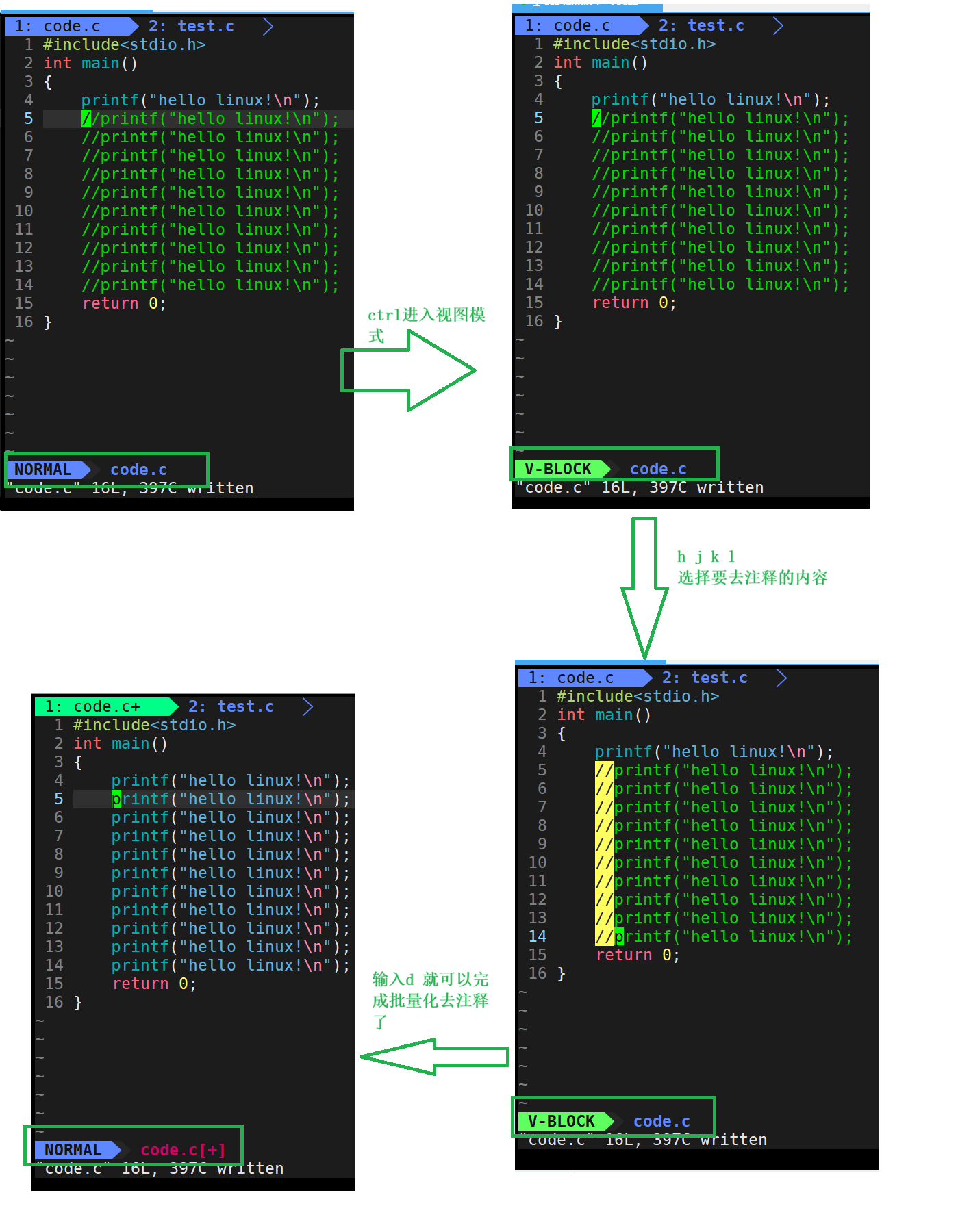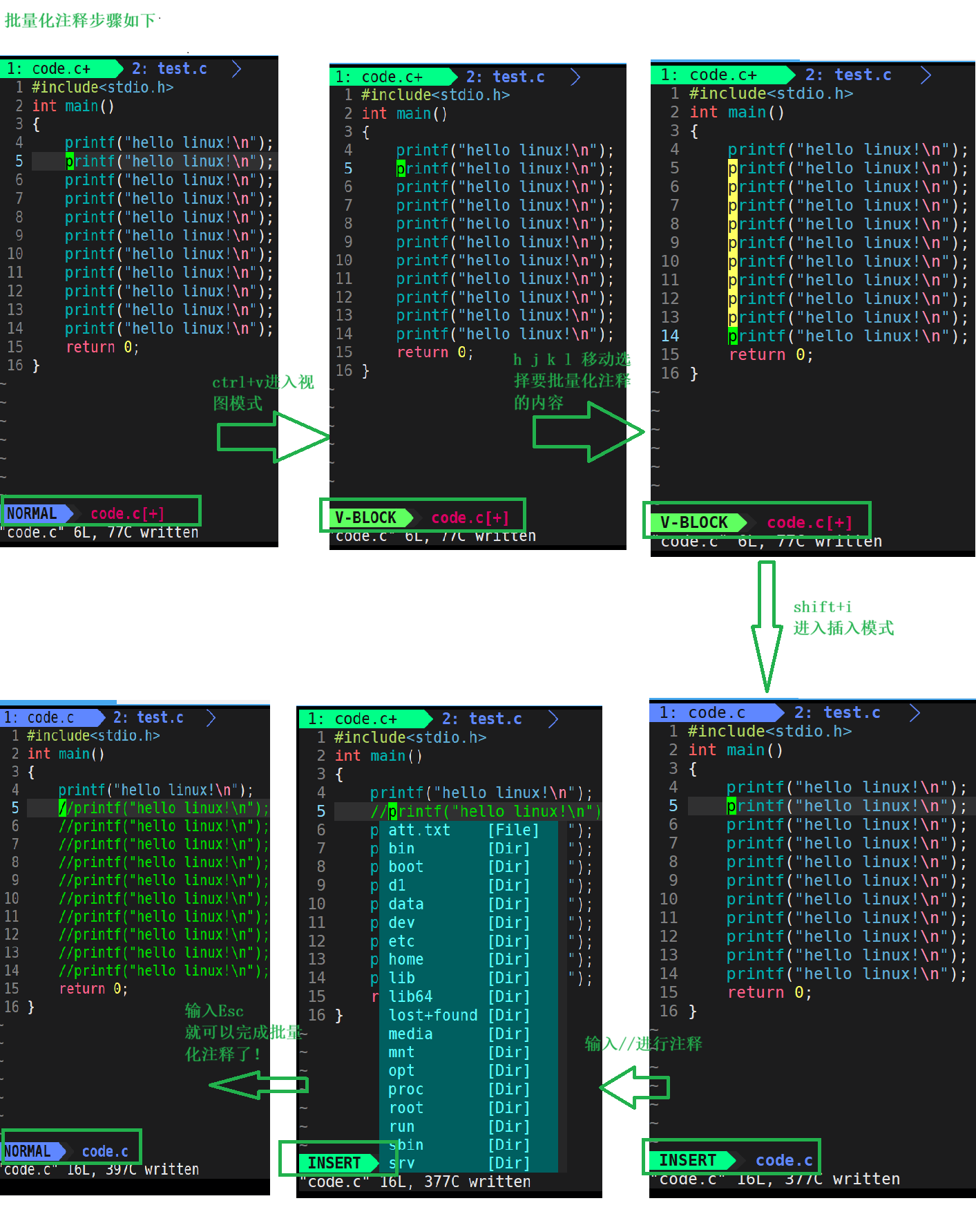 这里记住: 批量化操作不仅仅可以用来写注释,也可以结合我们上面刚刚学过的指令完成对应的批量化操作
