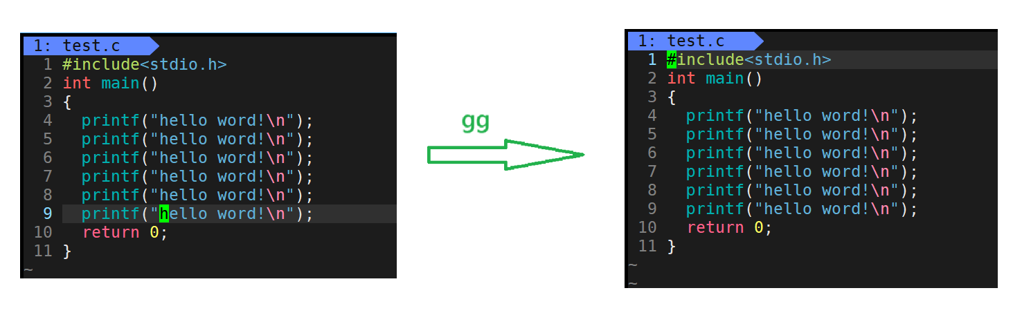 gg:定为光标至文本最开始